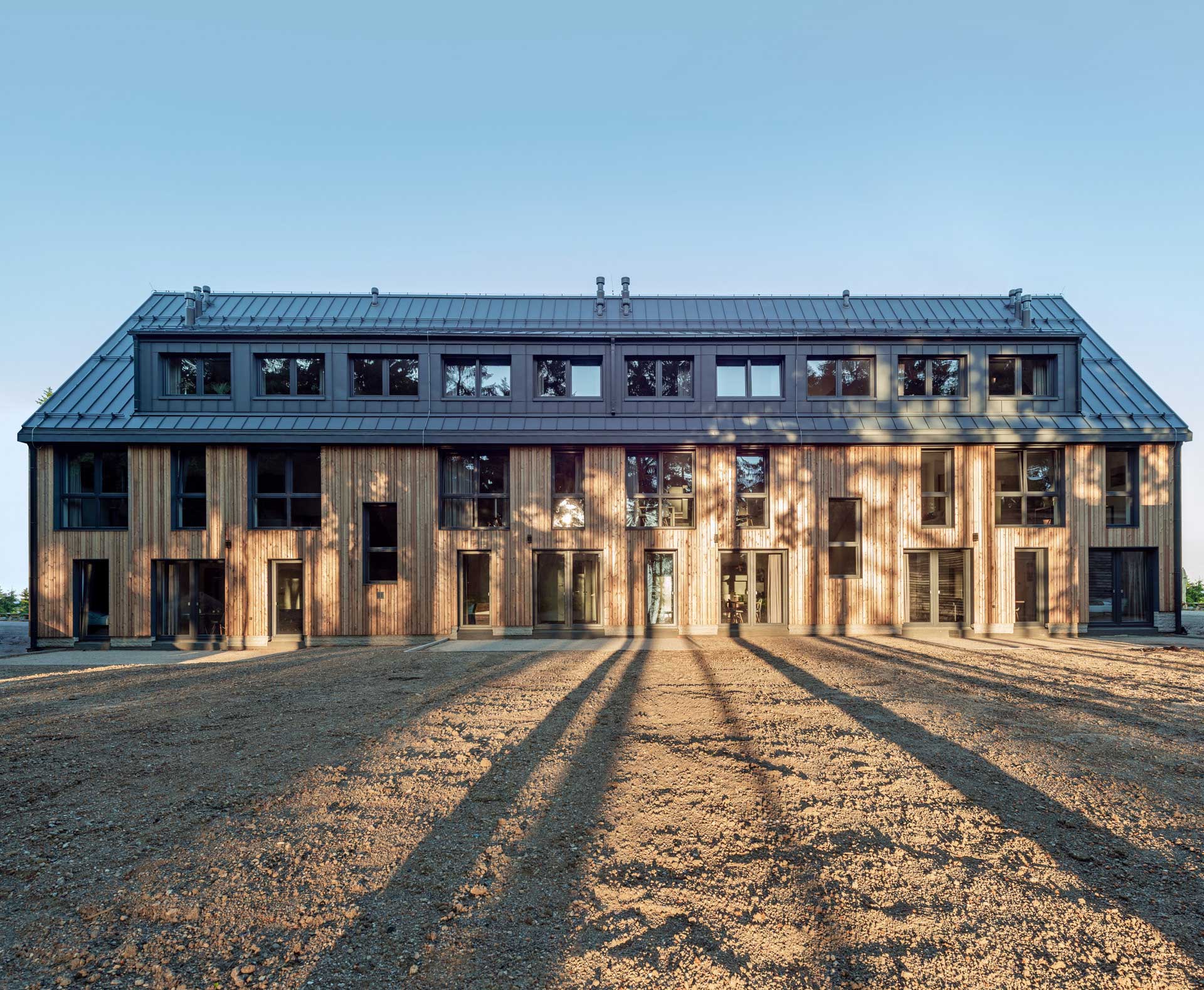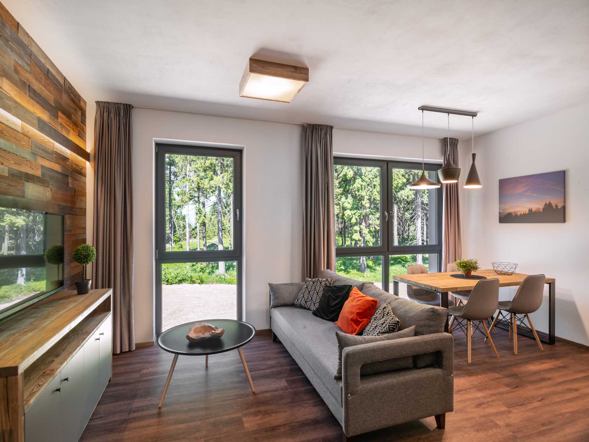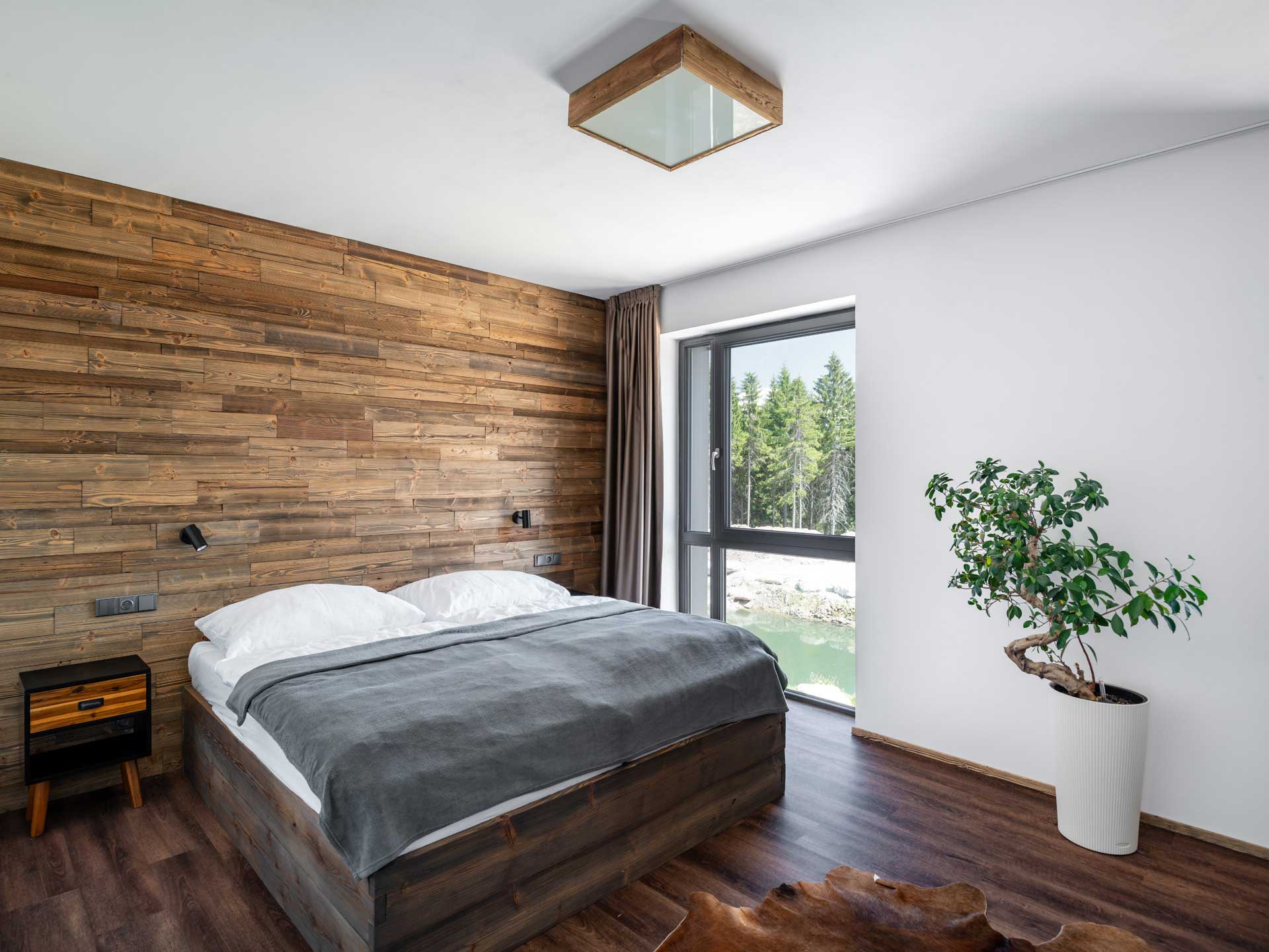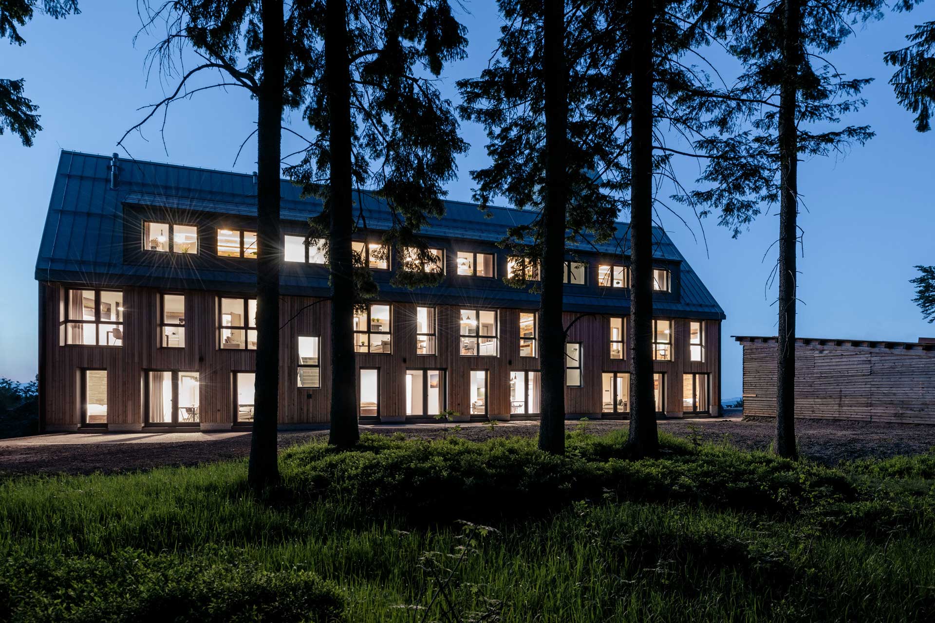 Apartmánový dom navrhoval architekt Richard Černý. Antracitové strechy, drevené obklady zo severského modrínu, sokle z miestnej libereckej žuly, ktorá je rovnaká ako tá, ktorá sa nachádza priamo na Královke. Dom na prvý pohľad upúta tiež veľkým množstvom okien s profilmi Eforte v antracitovom dekore. „Plast bol pre nás jasná voľba, chceli sme niečo odolné, čo vydrží tunajšie náročné klimatické podmienky s minimálnou údržbou. Hliník je pre mňa studený a, samozrejme, je cenovo tiež niekde celkom inde,“ komentuje výber spolumajiteľ hotelu Tomáš Fotul.