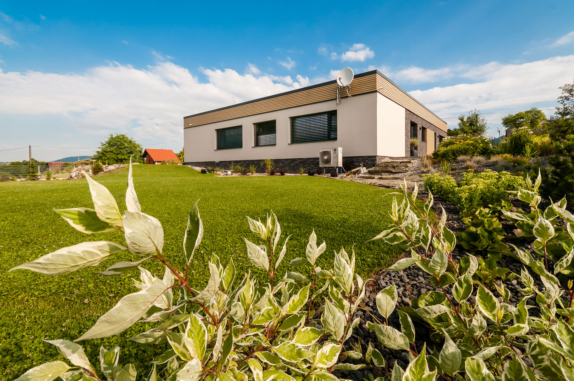 Moderný rodinný dom na nádhernom mieste v Beskydách zapadá do okolitej krajiny a nijako ju nezaťažuje. Je postavený v pasívnom štandarde, vybavený tepelným čerpadlom voda–vzduch, rekuperačným systémom a kvalitnými plastovými oknami a posuvnými dverami, ktoré obstáli aj v Blower-door teste. Dom má tiež vlastný zdroj vody.