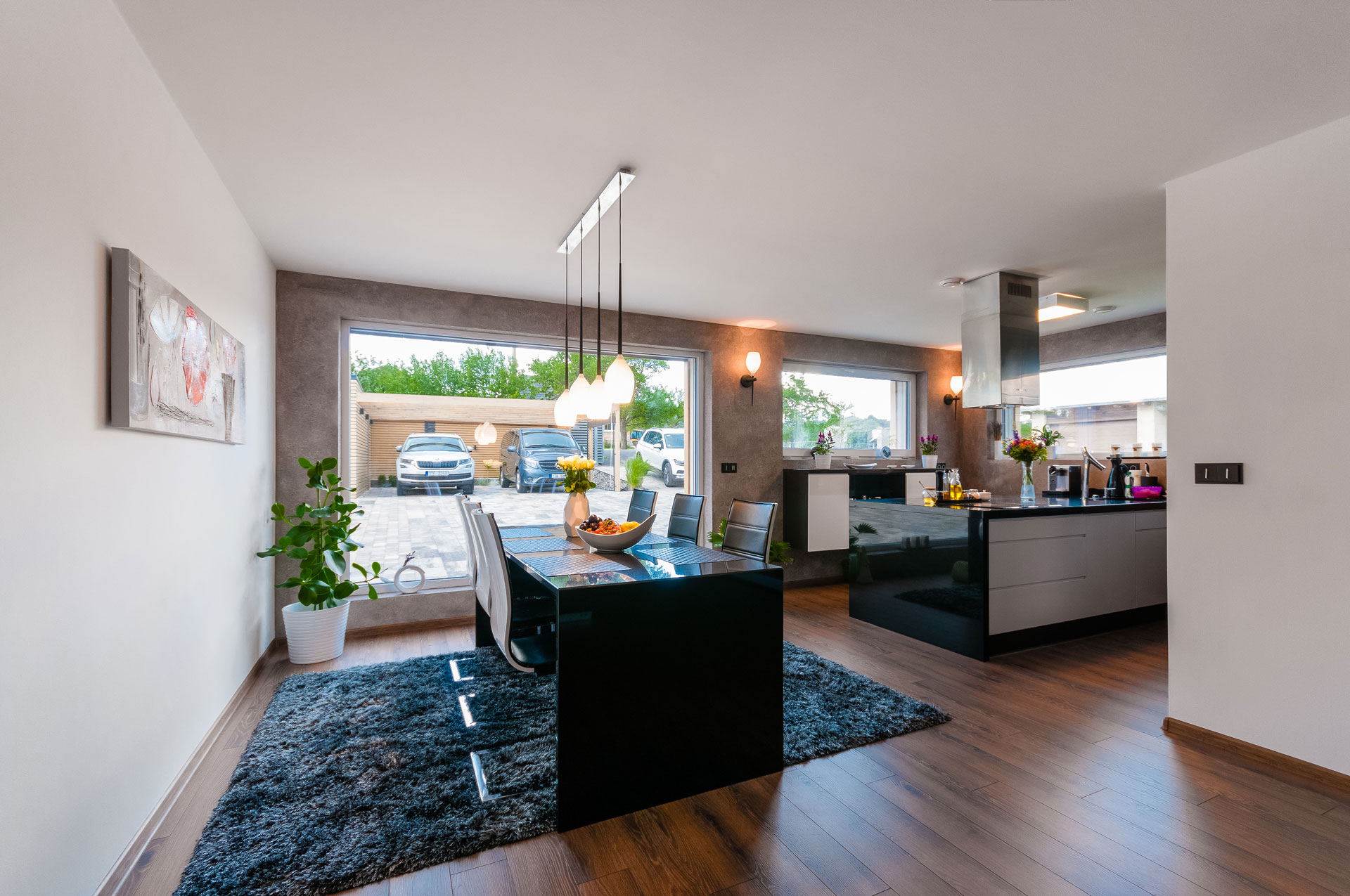 V každej miestnosti domu nájdeme veľkoformátové okná alebo zdvižno-posuvné dvere s PVC profilmi Deceuninck Eforte (zvnútra biele, zvonka antracitové). Vďaka nim je všade množstvo svetla a tiež krásny výhľad do záhrady.