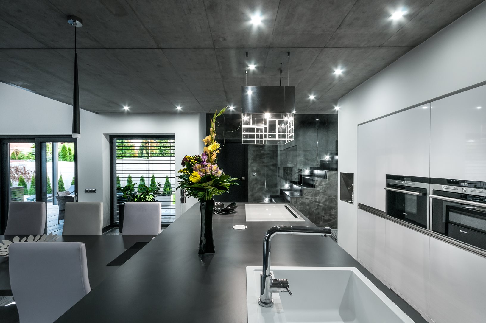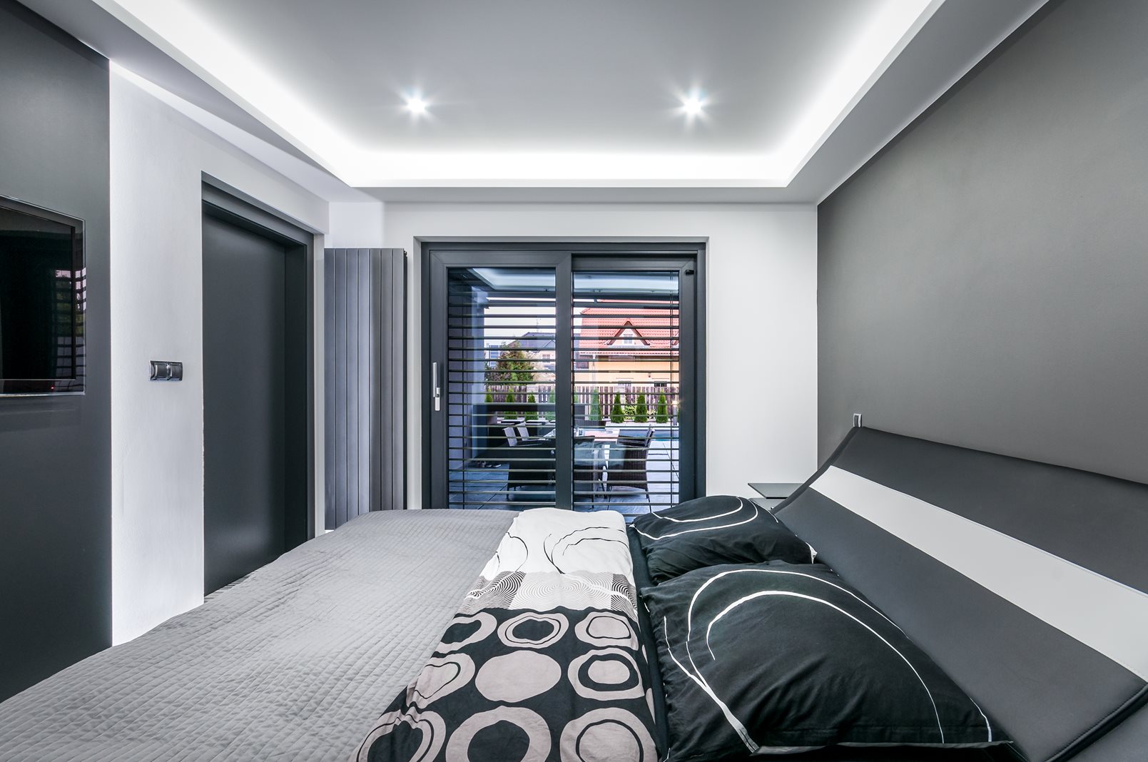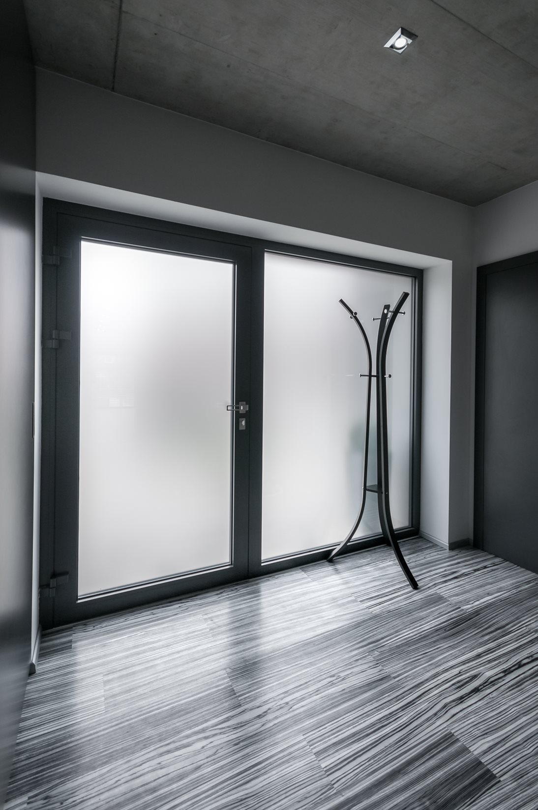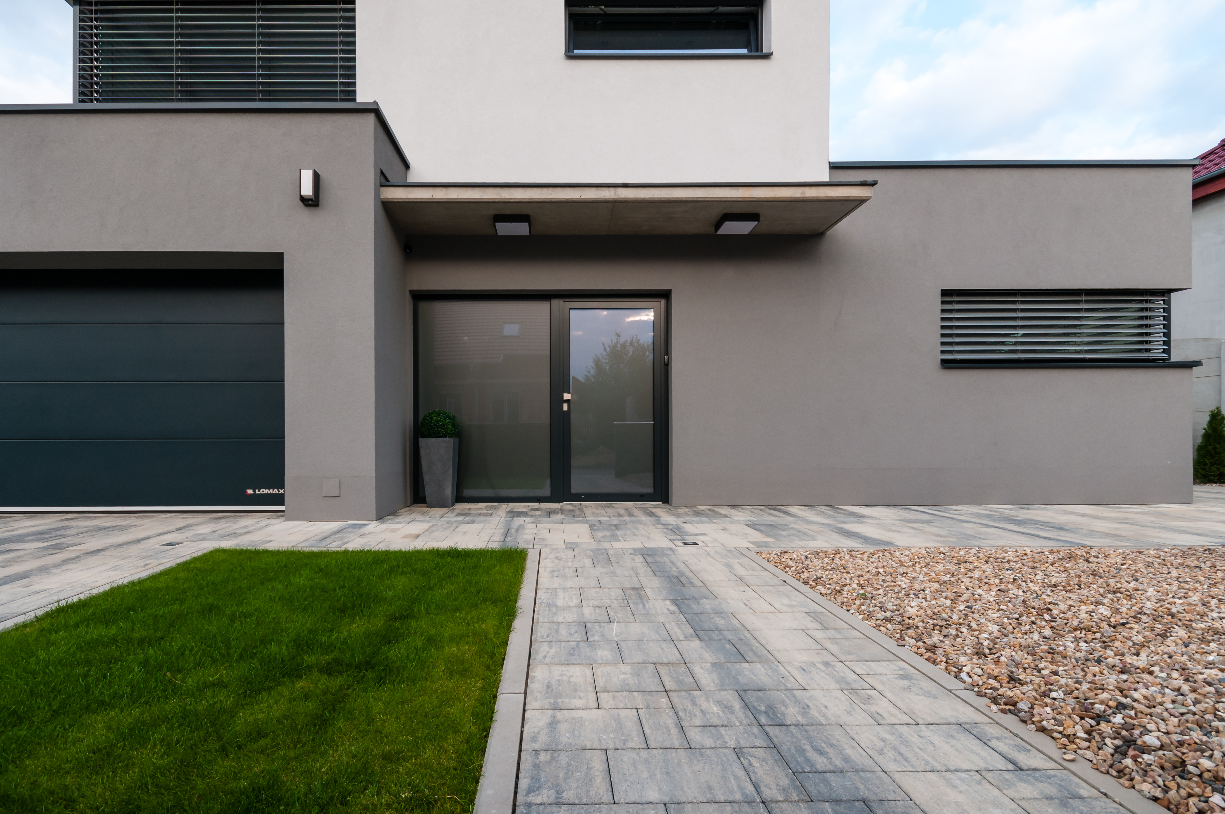Dom charakterizujú nadštandardne veľké okná s rozmermi 3,5 x 2,4 m a 4,5 x 1,3 m. Práve sklenené tabule s mimoriadnymi rozmermi, rohové okná realizované spojom sklo na sklo (teda "bezrámové" riešenie) a posuvné dvere na terasu, všetko realizované v pasívnom štandarde, dodávajú celej stavbe presvetlenie a vzdušnosť. Zvolené okenné profily Eforte nesú bez problémov hmotnosť zasklenia niekoľko stoviek kilogramov. Sivý dekor korešponduje s farebnosťou fasády aj plechovej strechy.