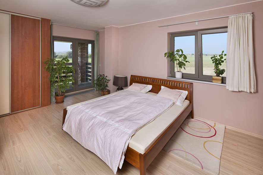 Rodinný domček vo Zloníne rozhodne nie je sériovou novostavbou v satelite na okraji Prahy. Má svoj vlastný štýl. Zaujímavým trendovým prvkom sú PVC profily Deceuninck Prestige s povrchovou úpravou Titanium Plus, z ktorých sú zhotovené nielen okná, ale aj veľké posuvné dvere na terasu. Ide o profily s plastovým jadrom a s vrchnou vrstvou fólie, ktorá dokonale napodobňuje hliník a je aj mimoriadne odolná a stála. S ňou ladí aj sivé jadro profilu.